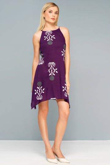 Women's Purple Sleeveless Hem Dress with Floral print – Boho Summer Casual Dress