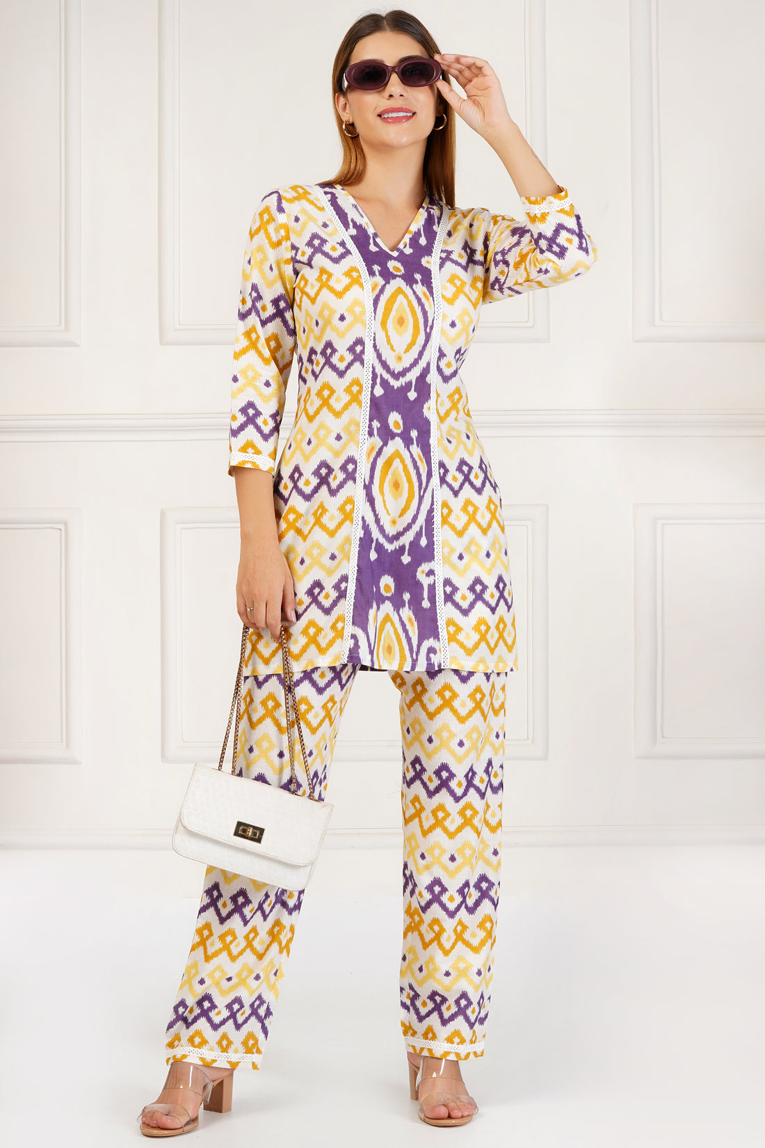 Ethnoza Purple Ikat Print Co-Ord Set – Regal Rhythm Edition