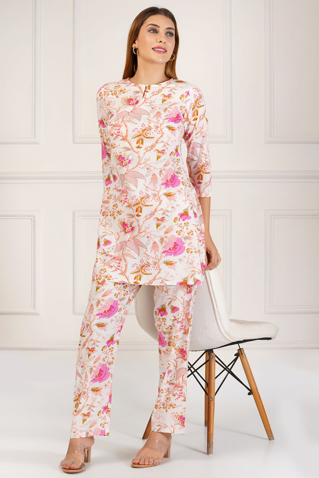 Ethnoza Floral Elegance Co-Ord Set – Blush Bloom Edition
